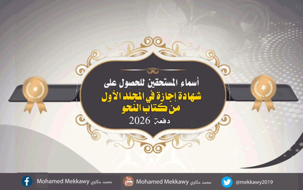 أسماء المستحقين للحصول على شهادة إجازة المجلد الأول من كتاب النحو – يناير 2026