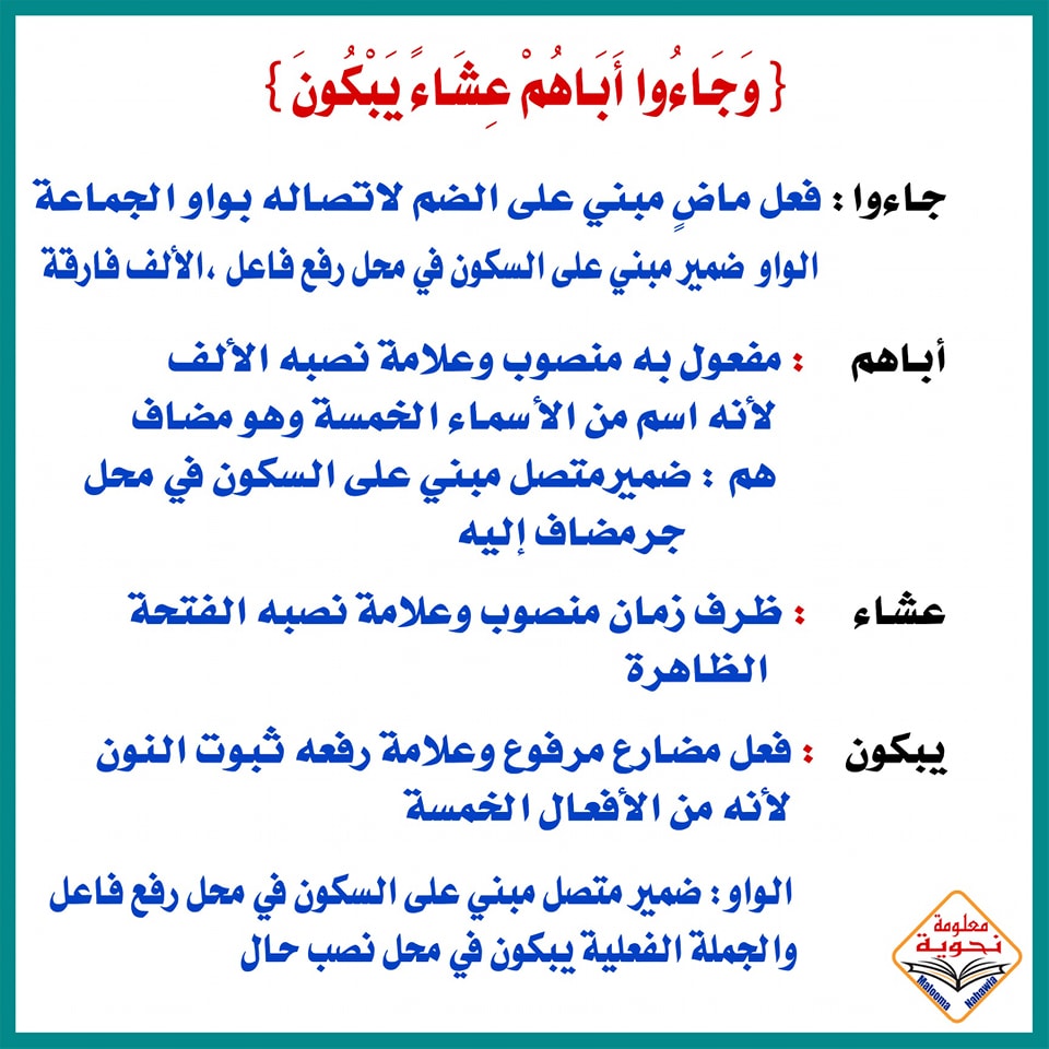 إعراب آية (وجاءوا أباهم عشاء يبكون)